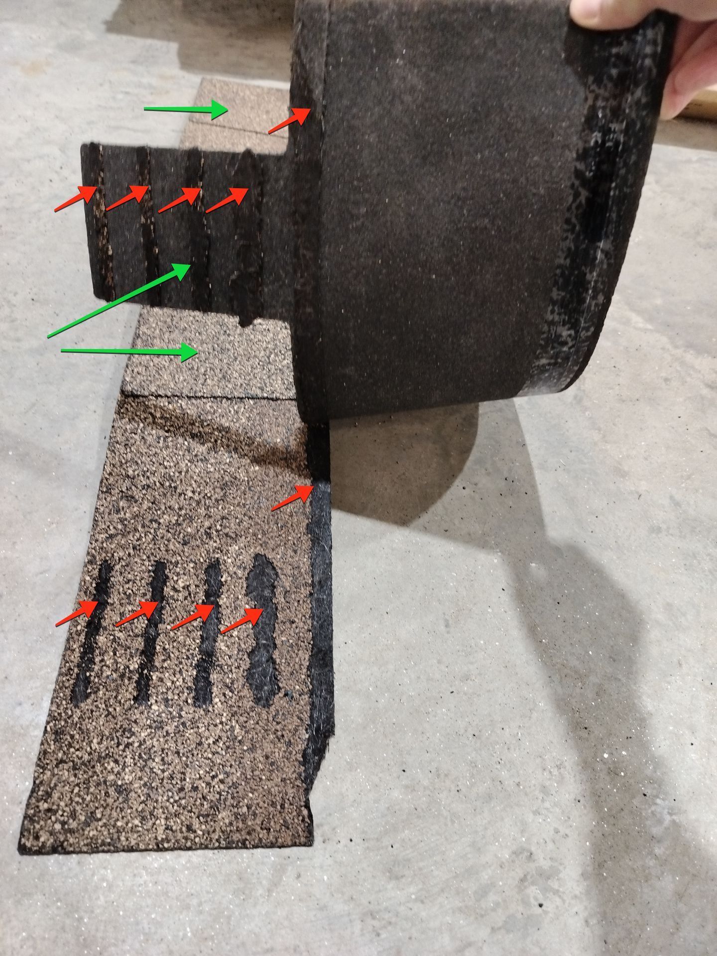 Attached behind that is the lower portion, which adds thickness, dimension, and strength. Together, these pieces create a heavier, more robust shingle than the old 3‑tab style. During manufacturing, high heat fuses the two sections together. This lamination creates a strong bond and gives the final product that thicker, dimensional look that homeowners prefer today.